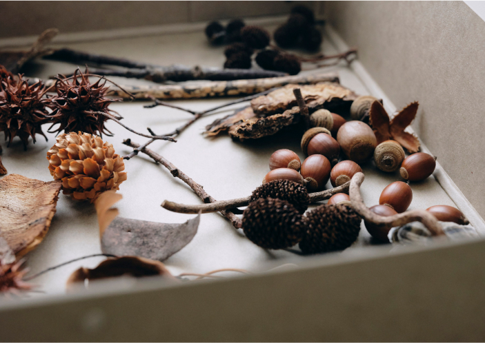 山の景色を集めていくという行為は写真やプロダクトの表現だけではなく、実際に木の実や枝を拾うことでもあると話す鈴木さん。